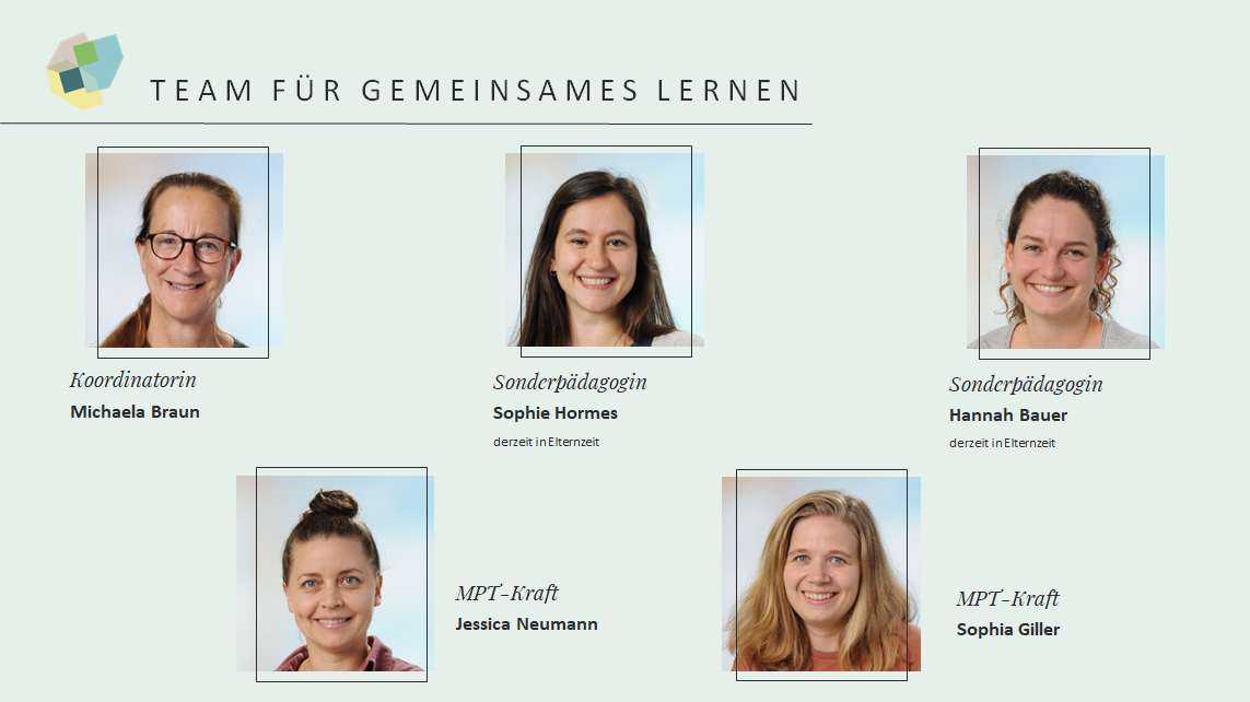 Gemeinsames Lernen kann allerdings nur funktionieren, wenn alle mithelfen und die Verantwortung teilen. Eine enge Zusammenarbeit im Multiprofessionellen Team findet daher mit allen Lehrkräften, der Schulsozialarbeit, der Nachmittagsbetreuung sowie dem Schulleitungsteam statt. Einzelne Schüler*innen werden im Schulalltag zusätzlich von Schulbegleiter*innen unterstützt.